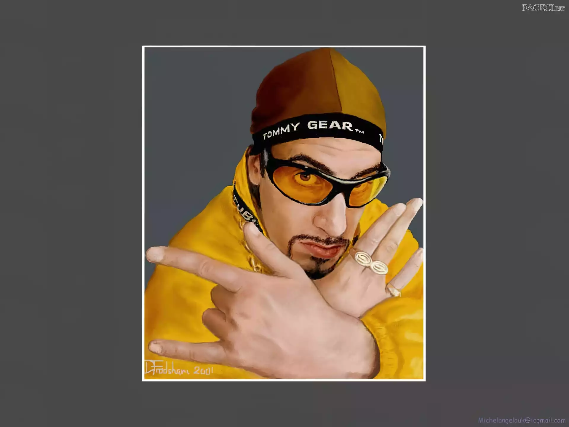 Sasha Baron Cohen, żółty strój Sasha Baron Cohen, zdjęcia Sasha Baron Cohen, borat złoty strój, Sasha Baron Cohen, okulary Sasha Baron Cohen, niebieski dres Sasha Baron Cohen, ali g Sasha Baron Cohen, gruby łańcuch
